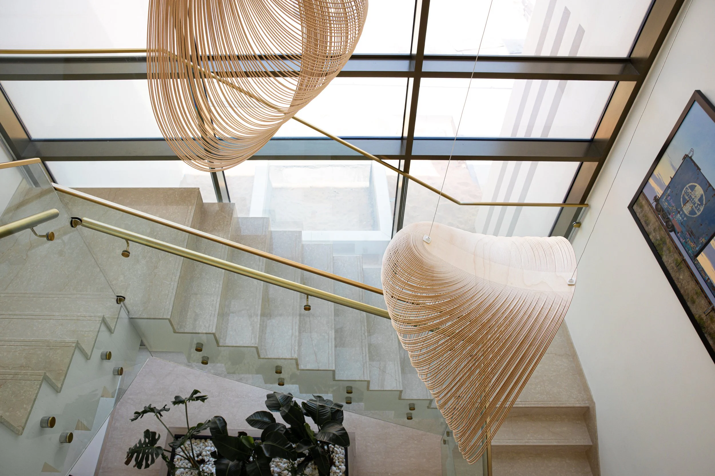 The owner’s private art collection plays a key role in the design, adding splashes of colour that bring life and personality to the soft, calm tones throughout.